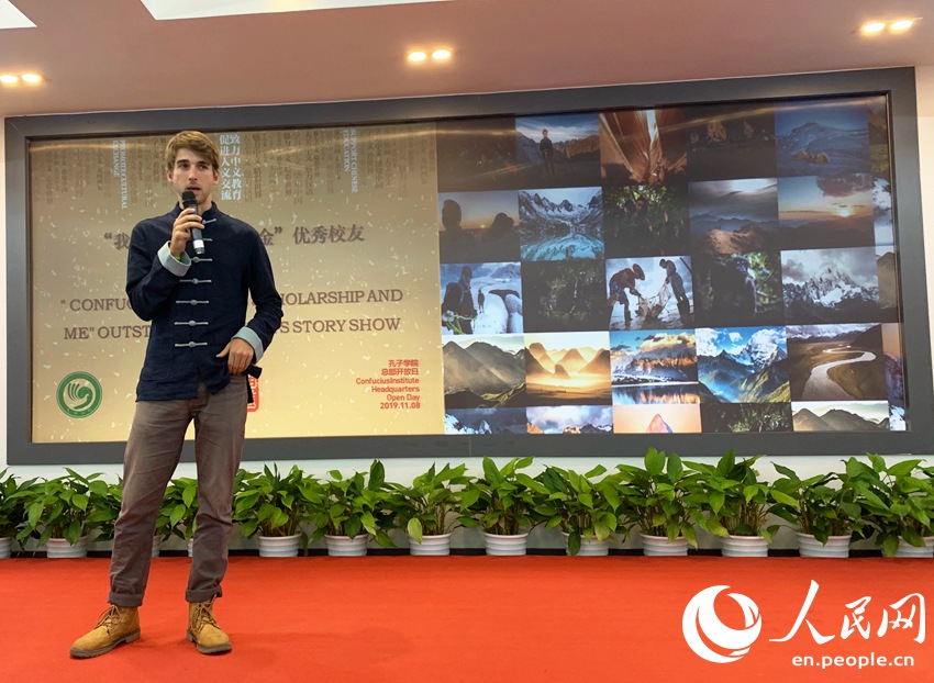 Kyle David Obermann shares his story during the Confucius Headquarters Open Day on Nov.8, 2019 in Beijing. (People’s Daily Online/Zhao Tong)