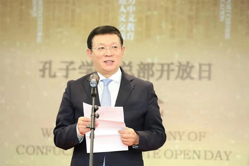 Ma Jianfei, Deputy Chief Executive of the Confucius Institute Headquarters, delivers a speech during the Confucius Headquarters Open Day in Beijing on Nov.8, 2019. (Photo/Sun Ying)