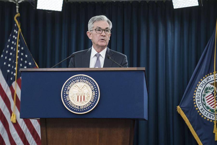 U.S. Federal Reserve Chairman Jerome Powell speaks during a press conference in Washington D.C., the United States, on Dec. 11, 2019. The U.S. Federal Reserve on Wednesday left interest rates unchanged after cutting rates at each of the last three meetings, as officials assessed the effect of rate cuts on the U.S. economy. (Photo by Sarah Silbiger/Xinhua)