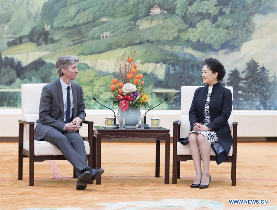 BEIJING, Jan. 8 (Xinhua) -- Peng Liyuan, wife of Chinese President Xi Jinping, on Wednesday met with Damian Woetzel, president of the Juilliard School.