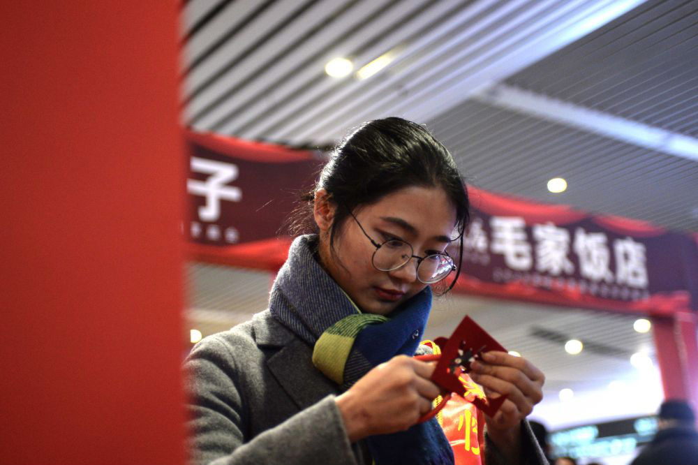 A temple fair for passengers returning to Hunan was held at the Changsha South Railway Station on January 15. After answering questions about the safe travel by high-speed trains, passengers were given free New Year goods of featured Hunan brands. An on-site paper-cutting activity was also available. (en.changsha.gov.cn)