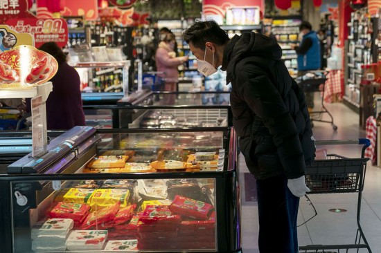 Residents shop at a supermarket in Wuhan, Jan. 27, 2020. (Xinhua/Xiong Qi)