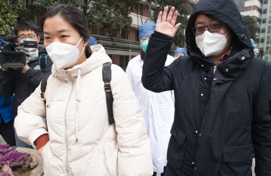 Medical workers diagnosed with the novel coronavirus (2019-nCoV) pneumonia are cured and discharged from a hospital in Wuhan, Jan. 28, 2020. (Xinhua/Xiao Yijiu)