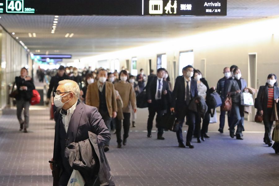 Passengers wearing face masks are seen at Haneda Airport in Tokyo, Japan, Jan. 29, 2020. (Xinhua/Du Xiaoyi)