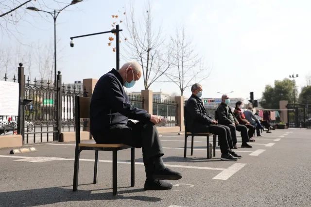 In order to ensure that these senior residents can enjoy sunshine while being well protected from the virus, staff members of the apartment complex have been putting some chairs in the parking lot and have made appropriate arrangements so that old people can enjoy sunshine while keeping certain distance from each other.