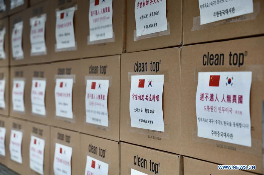 SEOUL, Feb. 27 (Xinhua) -- The Chinese Embassy in South Korea on Thursday donated around 25,000 medical masks to the city of Daegu in southern South Korea in an effort to support the city which was hit by COVID-19 outbreak.