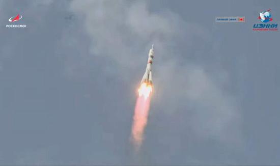 Russia launched on Thursday a manned spacecraft with three astronauts onboard which will dock to the International Space Station (ISS) later in the day.