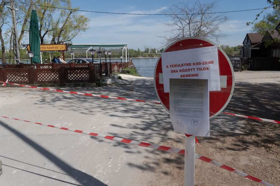 A notice at an entrance to a public park informs people of the closure time on the Easter weekend due to the COVID-19 pandemic in Budapest, Hungary, on April 10, 2020. (Photo by Attila Volgyi/Xinhua)