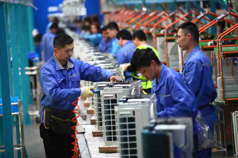 Workers manufacture air conditioners at a production base of AUX Group in Anhui Dangtu Economic Development Zone, east China’s Anhui province, April 10, 2020. Photo by Wang Wensheng, People’s Daily Online