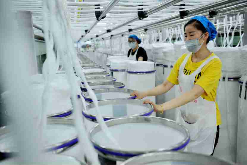 Employees inspect production at a new material company based in Shuyang county, east China’s Jiangsu province, April 12, 2020. Photo by Zhong Chongliang, People’s Daily Online