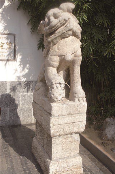 A stone lion with a smiling face. Many stone lions were carved with big smiles in the south of the Yangtze River during the Ming and Qing Dynasties.
