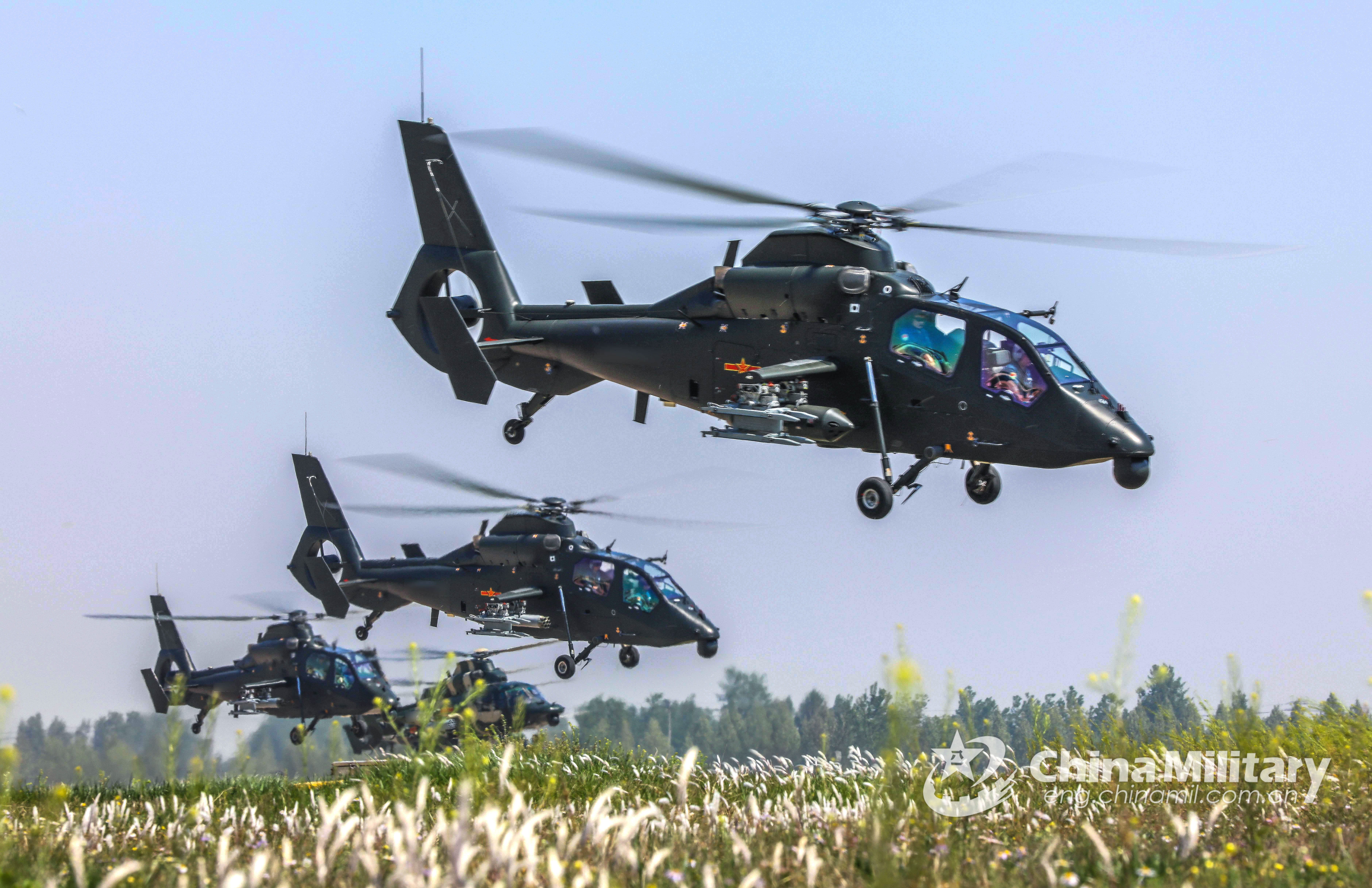 Z-19 attack helicopters attached to an aviation brigade of the ground force under the PLA 80th Group Army prepare to lift off after going through thorough inspections during a long-range and quick-response training exercise on April 24, 2020. (eng.chinamil.com.cn/Photo by Chen Jian)
