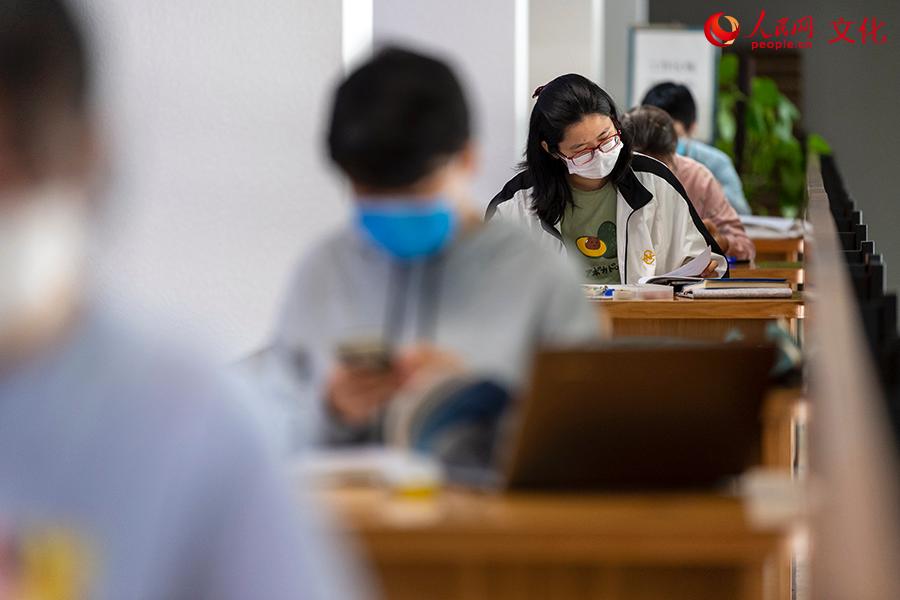 Readers look up materials at a reading room of the National Library on May 12. (Photo/Weng Qiyu)