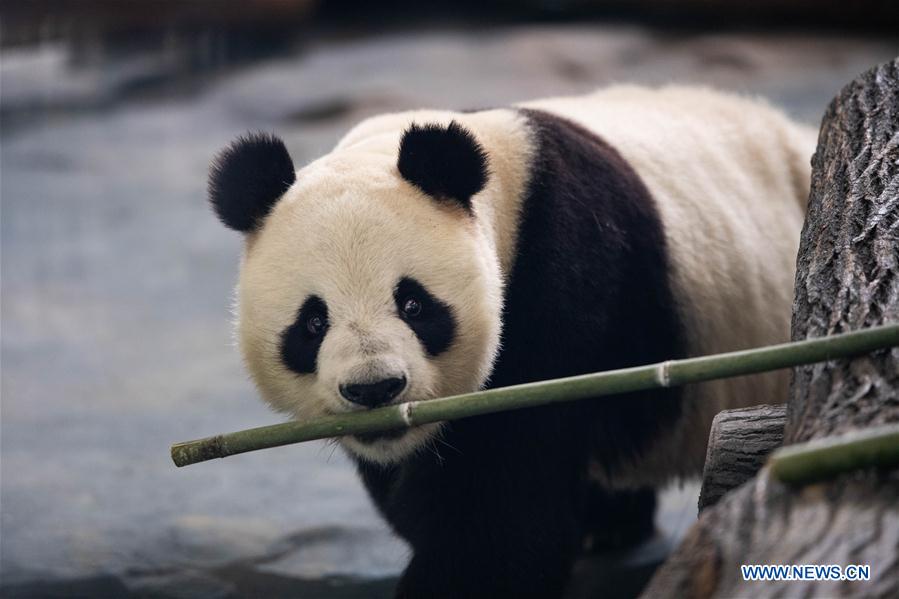Giant panda "Xing'an" is seen at a giant panda garden in Fenghuang County of central China's Hunan Province, June 1, 2020. A total of 8 giant pandas from southwest China's Sichuan Province settled in Fenghuang County recently. They will make their debut in about 2 weeks. (Xinhua/Chen Sihan)
