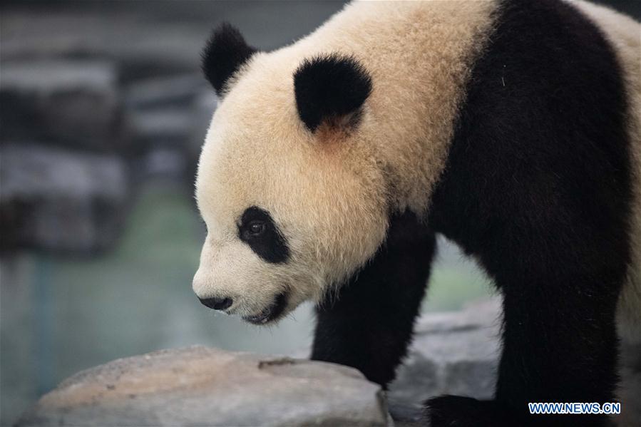 Giant panda "Xing'an" is seen at a giant panda garden in Fenghuang County of central China's Hunan Province, June 1, 2020. A total of 8 giant pandas from southwest China's Sichuan Province settled in Fenghuang County recently. They will make their debut in about 2 weeks. (Xinhua/Chen Sihan)