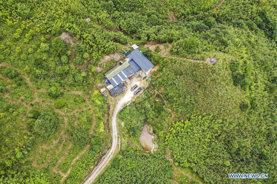 Aerial photo taken on July 9, 2020 shows the Longdaoshan forestry station in the Dayao Mountain National Nature Reserve in Jinxiu Yao Autonomous County, south China's Guangxi Zhuang Autonomous Region. Huang Tongfu, 48, has devoted himself to patrolling the Dayao Mountain National Nature Reserve for 14 years. His spouse, Huang Rixiu, the same age as him, was hired as a forest ranger in 2017. (Xinhua/Cao Yiming)