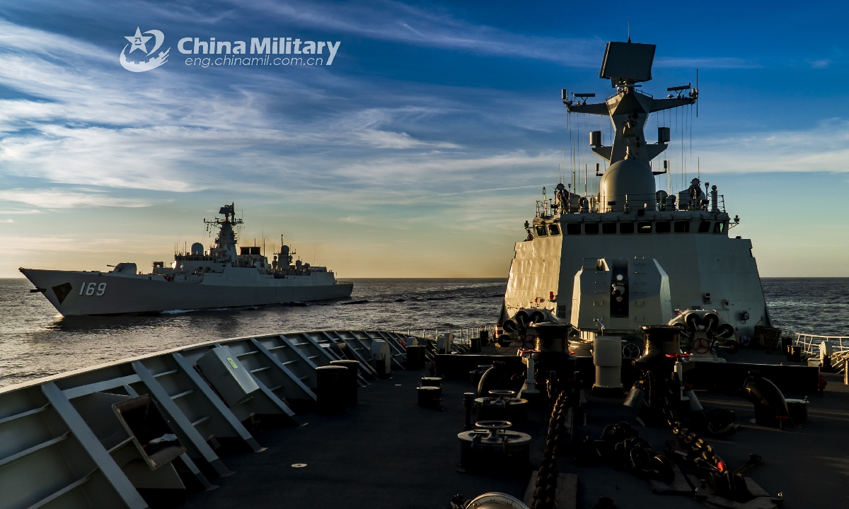 The guided-missile frigate Hengyang (Hull 568) and the guided-missile destroyer Wuhan (Hull 169) attached to a destroyer flotilla with the navy under the PLA Southern Theater Command steam alongside with each other during a maritime maneuver operation in waters of the South China Sea on June 18, 2020. (eng.chinnmil.com.cn/Photo by Li Wei)