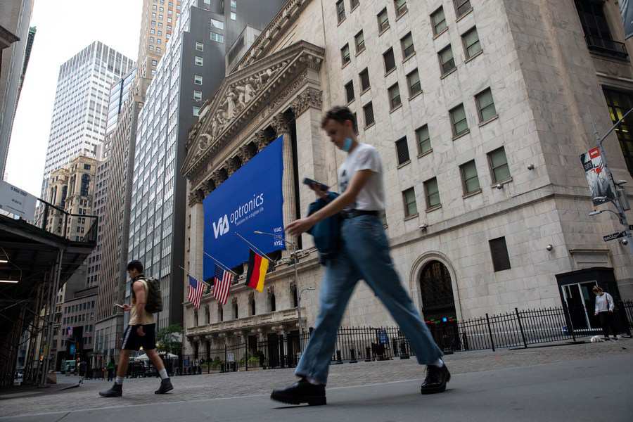 Pedestrians walk past the New York Stock Exchange in New York, the United States, Sept. 25, 2020. (Photo by Michael Nagle/Xinhua)