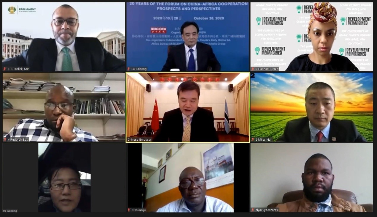 Johannesburg, October 29 (People’s Daily Online) – Chinese and African officials and experts lauded achievements on China-Africa cooperation, calling for closer ties between China and Africa at a webinar to mark the 20th anniversary of the establishment of the Forum on China-Africa Cooperation (FOCAC) on October 28.