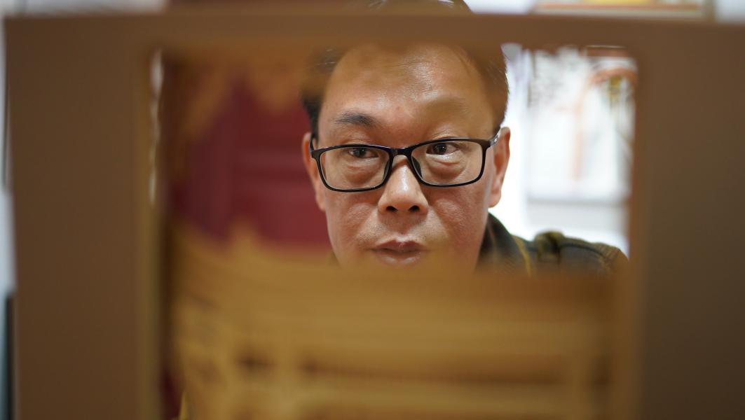 Paper carving artist Zhang Shoujiang creates artworks at his studio in Ganzhou, east China's Jiangxi Province, Nov. 12, 2020. (Xinhua/Zhou Mi)