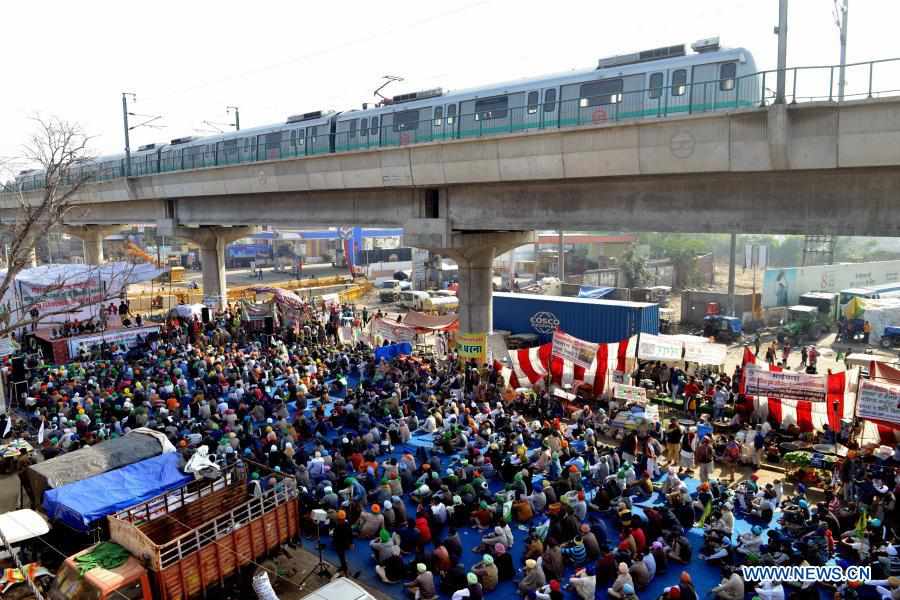 Farmers take part in a sit-in at Delhi Haryana Tikri Border in India, on Dec. 15, 2020. Thousands of farmers have been camping at several inter-state borders around Delhi, protesting against the three new farm laws recently enacted by the central government. (Photo by Partha Sarkar/Xinhua)