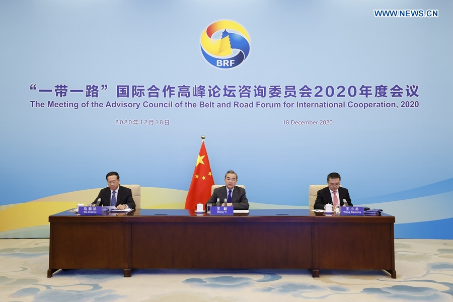 Wang made the remarks at the 2020 meeting of the Advisory Council of the Belt and Road Forum for International Cooperation via video link.