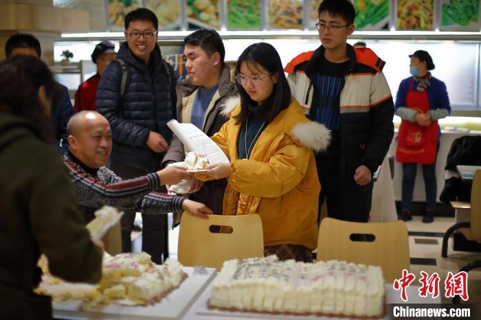 Chen Jie, an official responsible for the catering service of NUAA, shared that the catering service team specially prepared the cakes in the hope that the students will achieve satisfactory results in the upcoming exam, which falls on Dec. 26 and 27. Chen also likened the cakes to the “memory bread” in the Japanese animation “Doraemon,” hoping the students will, like Doraemon, memorize all of the bullet points after eating the cakes.