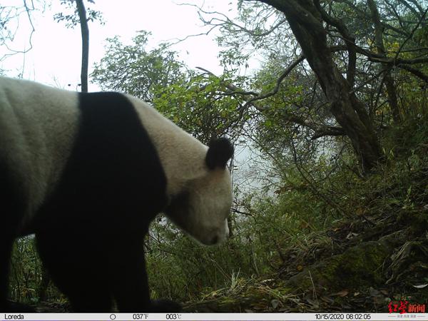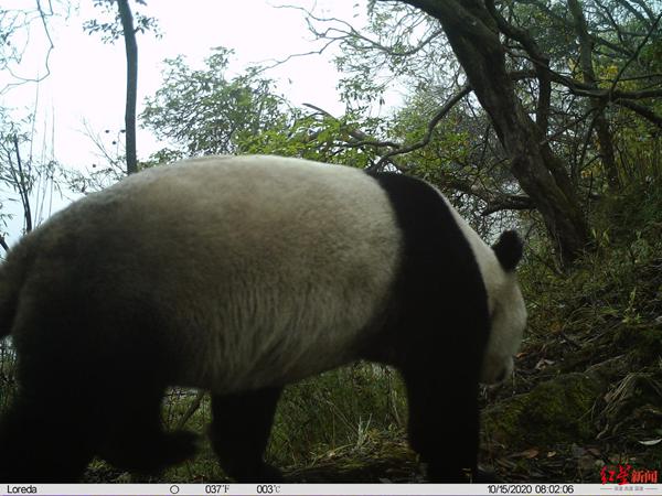 Photos taken by an infrared camera show an adult wild giant panda ambling in the protected area of Fushou village, Pingwu county, southwest China’s Sichuan province. (Photo/Media Convergence Center of Pingwu county)