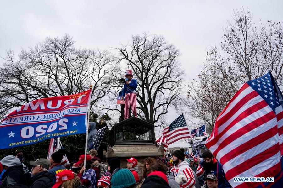 Supporters of U.S. President Donald Trump gather near the U.S. Capitol building in Washington, D.C., the United States, on Jan. 6, 2020. U.S. President-elect Joe Biden condemned what he called "insurrection" at the U.S. Capitol on Wednesday, after some supporters of the Republican incumbent, Donald Trump, broke into the building, forcing electoral vote counting to halt. (Xinhua/Liu Jie)