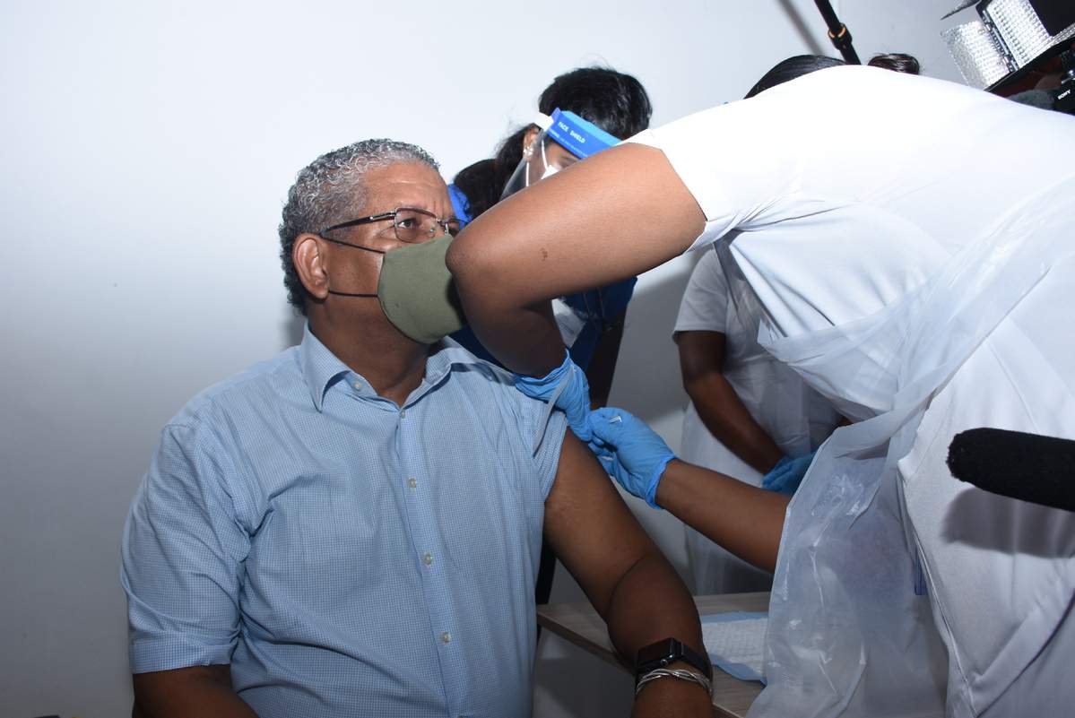 The country's president, Wavel Ramkalawan, was the first to receive the jab, an event broadcast on live television at a hospital in the capital Victoria. Several dozen public figures joined him.