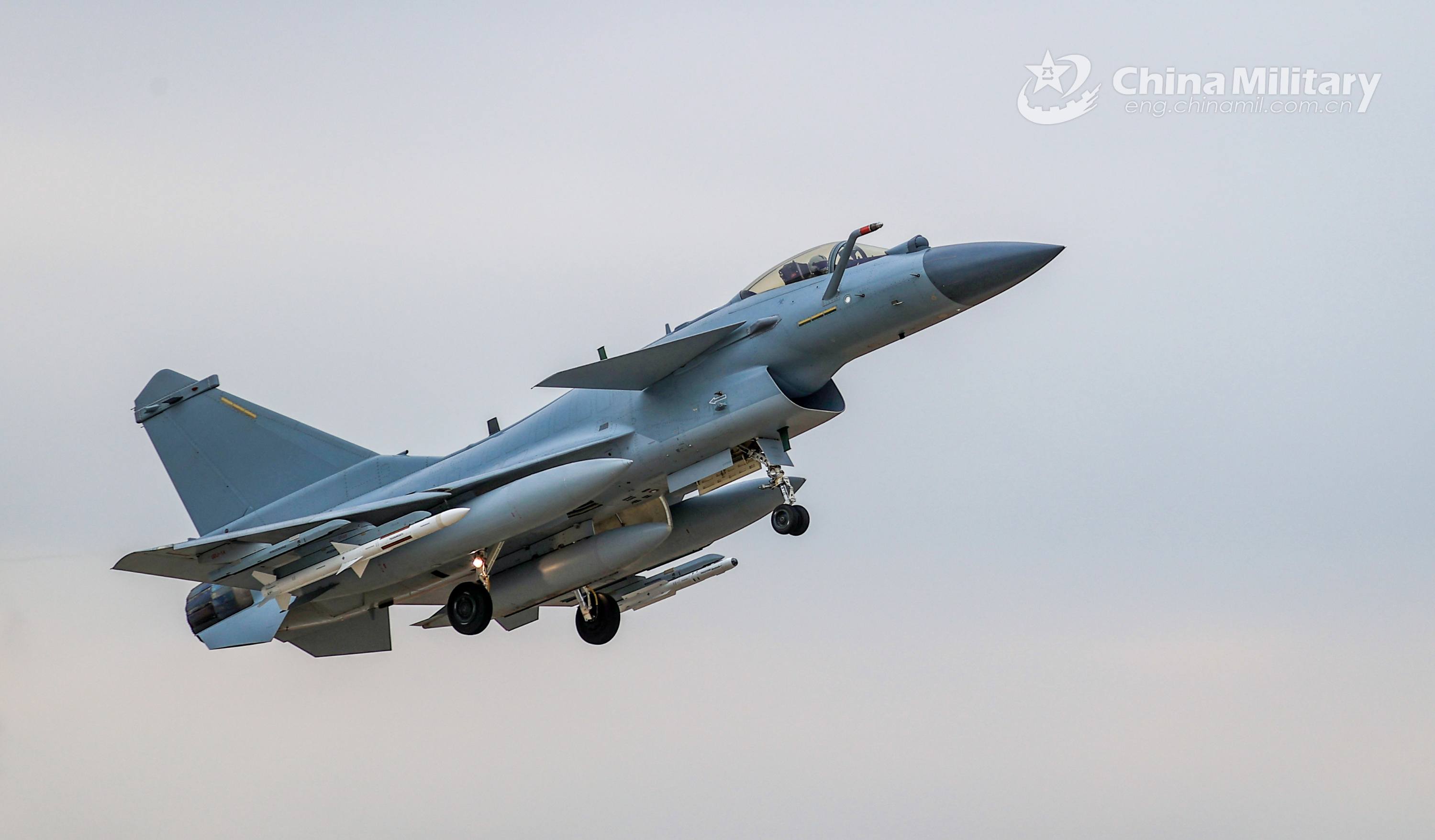 A J-10 fighter jet attached to an aviation brigade under the PLA Southern Theater Command takes off during the flight training exercise on Feb. 18, 2021, the first workday after the Spring Festival holiday. (eng.chinamil.com.cn/Photo by Wang Guoyun)