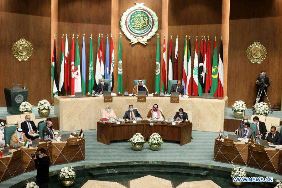 Photo taken on March 3, 2021 shows the scene of the 155th ordinary session of the Arab League Council in Cairo, Egypt. Arab foreign ministers agreed on Wednesday to renew the Arab League (AL) Secretary-General Ahmed Aboul-Gheit's five-year term. (Photo by Mohamed Asad/Xinhua)