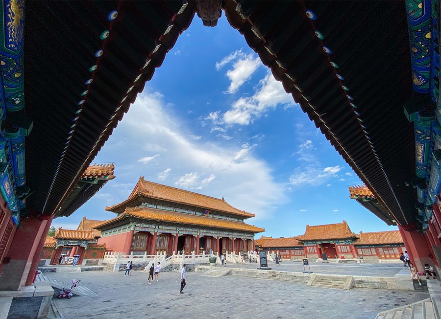 Photo taken with a mobile phone shows a view in the Palace Museum in Beijing, capital of China, Sept. 1, 2020. (Xinhua/Meng Chenguang)