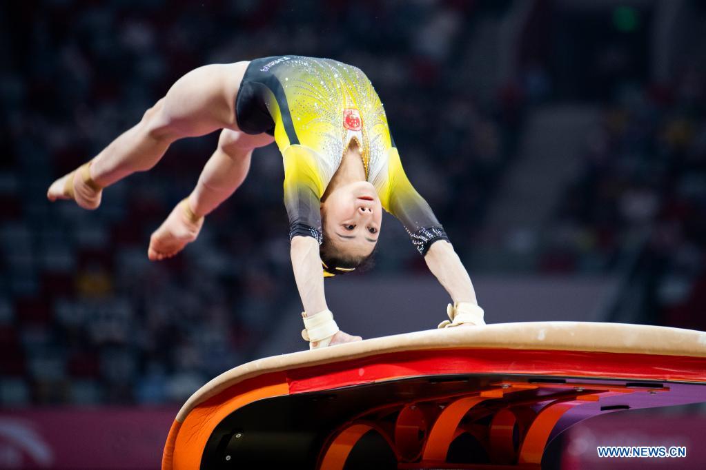 Li Shijia of Sichuan competes during the vault event of women's individual all-round final at the 2021 Chinese National Gymnastic Championships in Chengdu, southwest China's Sichuan Province, May 7, 2021. (Xinhua/Xu Bingjie)