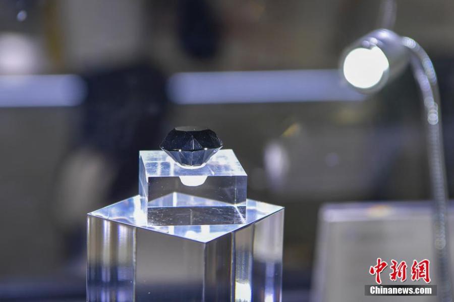 A 88-carat black diamond is on display at the First China International Consumer Goods Expo in Haikou, Hainan Province on May 7, 2021. (Photo: China News Service/Cui Nan)