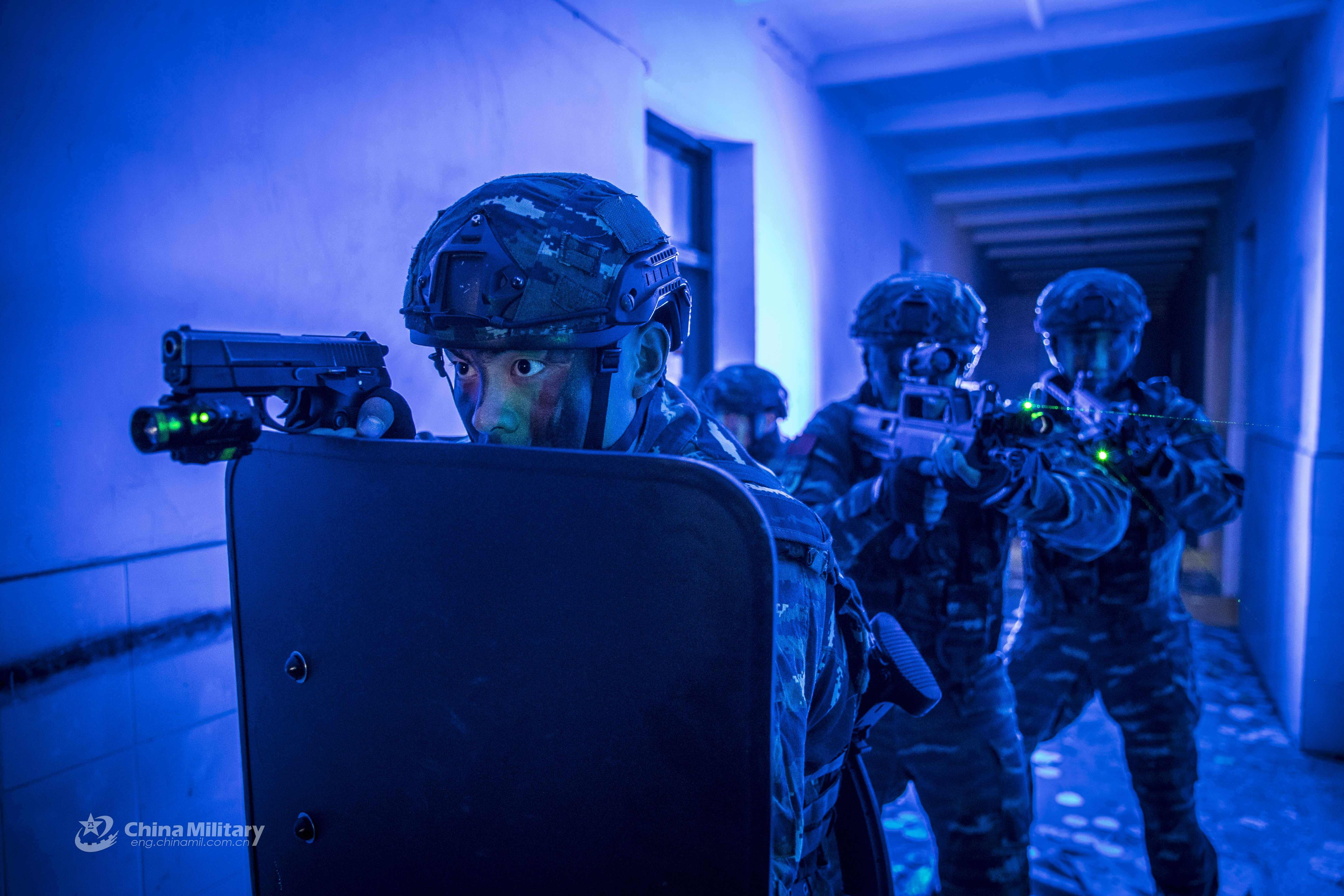 Special operations soldiers assigned to a detachment of the 2nd Mobile Corps under the Chinese People's Armed Police (PAP) Force break into the abandoned buildings during an anti-terrorism drill in late April, 2021.(eng.chinamil.com.cn/Photo by Yang Xiaochen)