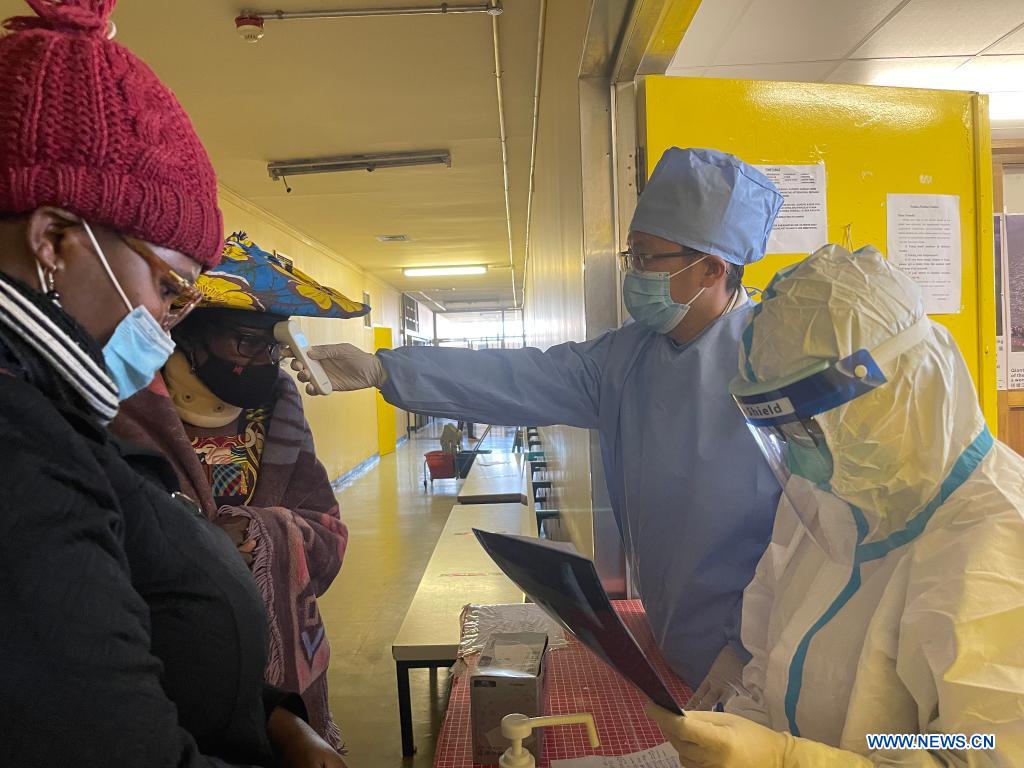 Members of a Chinese medical team check the temperature of patients at the Katutura State Hospital in Windhoek, Namibia, on June 16, 2021. The Chinese acupuncture department at the Katutura State Hospital in the Namibian capital Windhoek has widened its public reach, helping more locals re-gain health and physical mobility. (Photo by Ndalimpinga Iita/Xinhua)
