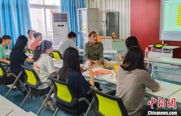 Photo shows VVeiss communicating with students in class. (Photo/chinanews.com)