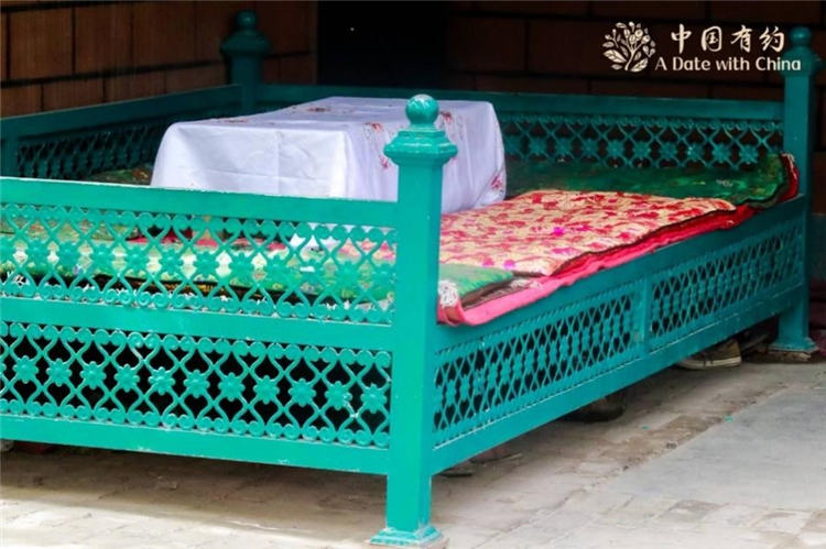 Photo shows a tetragonal low bed in a villager’s home in Shache county, Kashgar, northwest China's Xinjiang Uygur Autonomous Region. (Photo courtesy of “A Date With China” media tour)