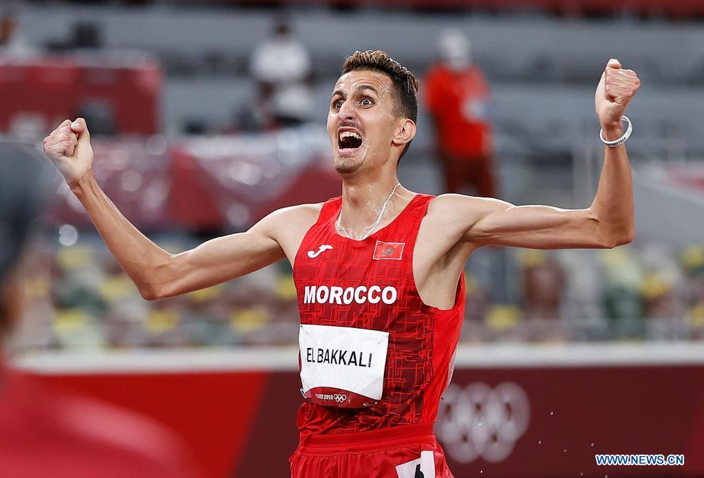 TOKYO, Aug. 2 (Xinhua) -- Soufiane El Bakkali of Morocco won men's 3000 meters steeplechase title at Tokyo Olympics on Monday.