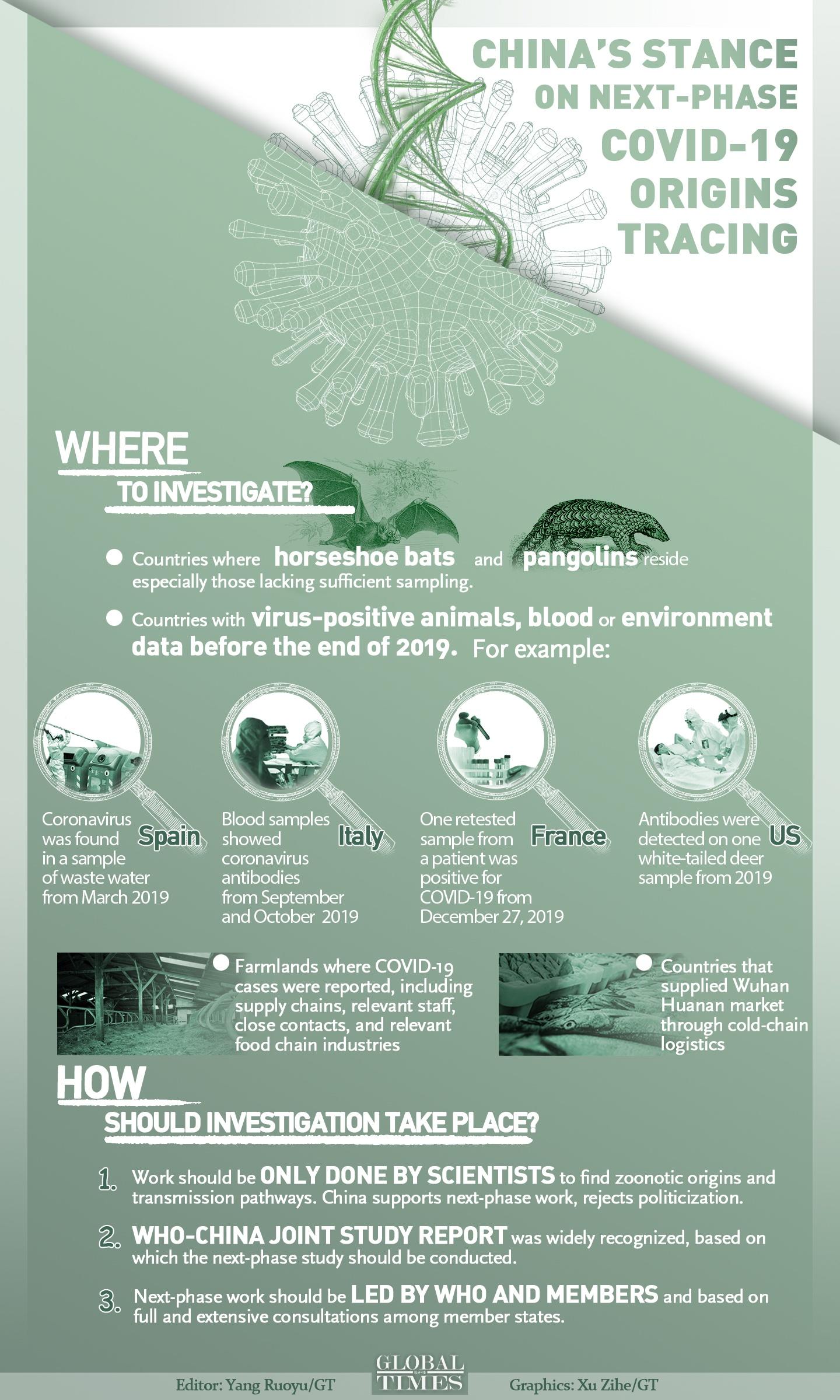 China's stance on next-phase #virusorigins tracing: Investigations should be carried out in countries such as where horseshoe bats & pangolins reside, those with virus-positive animal data and who supplied Wuhan Huanan market through cold-chain logistics. Editor: Yang Ruoyu/GT Graphic: Xu Zihe/GT