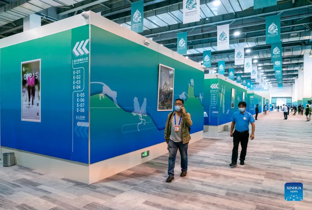 Photo shows the interior view of the media center of the 15th meeting of the Conference of the Parties to the UN Convention on Biological Diversity (COP15) in Kunming, southwest China's Yunnan Province, Oct. 9, 2021. The media center of the COP15 opened here on Saturday. The COP15 is set to kick off in Kunming on Oct. 11. (Xinhua/Chen Xinbo)