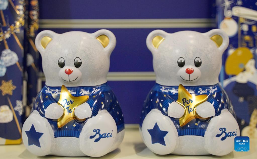 Photo taken on Oct. 15, 2021 shows chocolate products during the Eurochocolate in Perugia, Italy. The 27th international chocolate festival Eurochocolate kicked off on Friday in Perugia, an Italian city with a tradition of chocolate production. (Xinhua/Jin Mamengni)