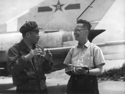 Gu Songfen interviews J-8 test pilot Lu Mingdong. (File photo)