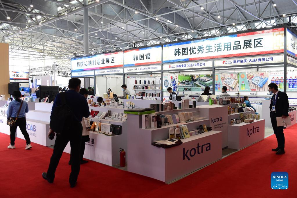 People visit the booth of South Korea at the fourth World Manufacturing Convention in Hefei, east China's Anhui Province, Nov. 19, 2021. The fourth World Manufacturing Convention kicked off Friday in Hefei, capital of east China's Anhui Province. The four-day event, themed "innovation-driven, digitally empowered: global manufacturing industry aligned for high-quality growth," aims to promote high-quality manufacturing and deepen exchanges between China and the rest of the world. (Xinhua/Huang Bohan)