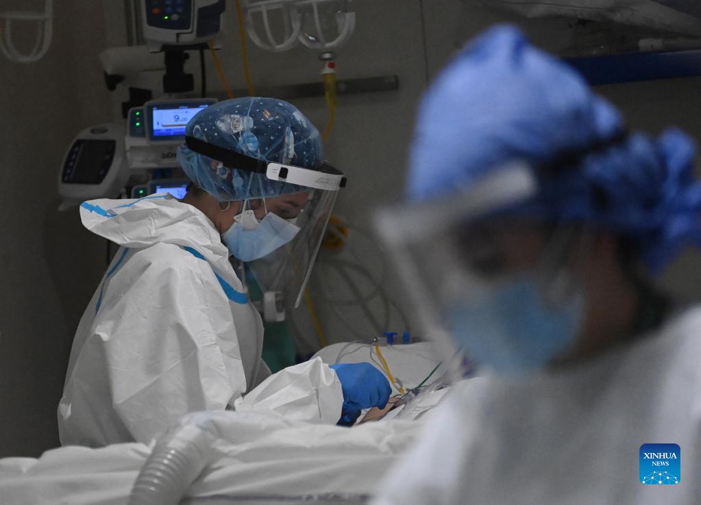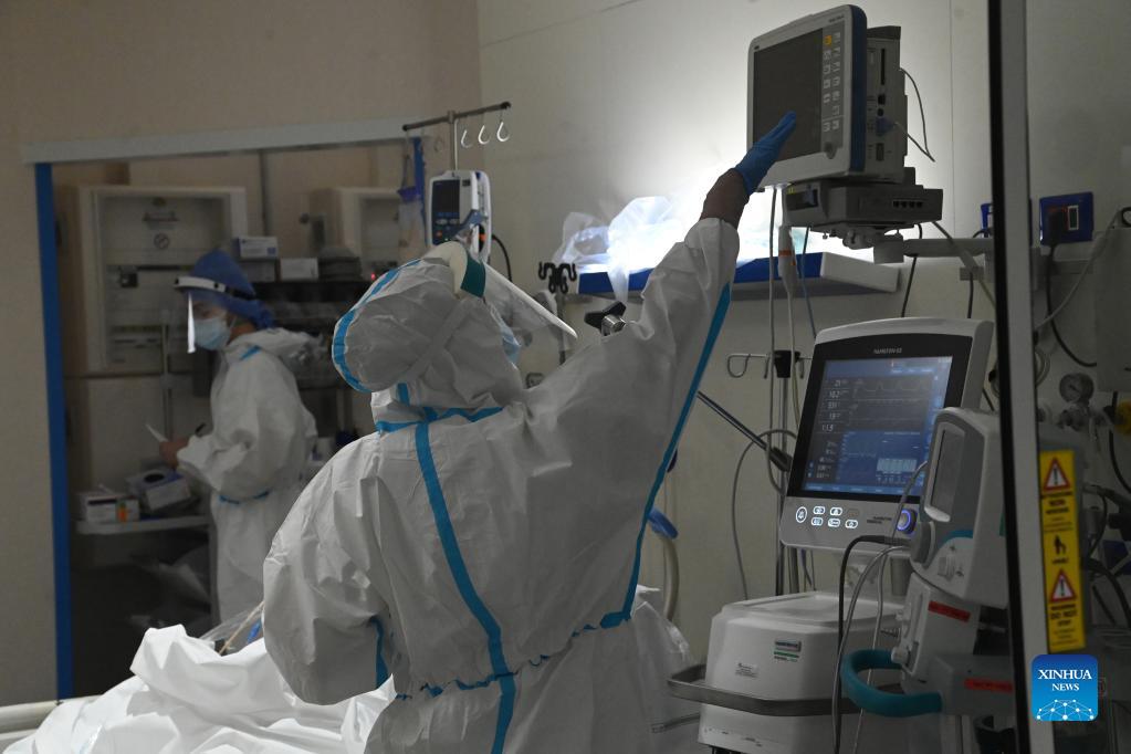 A medical staff member works in a COVID-19 unit at a hospital in Bologna, Italy, on Dec. 3, 2021. Coronavirus infection rates in Italy are on the rise. Italy reported 17,030 new COVID-19 cases on Friday, bringing the total number of confirmed COVID-19 cases to 5,077,445, according to the latest data from the Ministry of Health. (Photo by Gianni Schicchi/Xinhua)