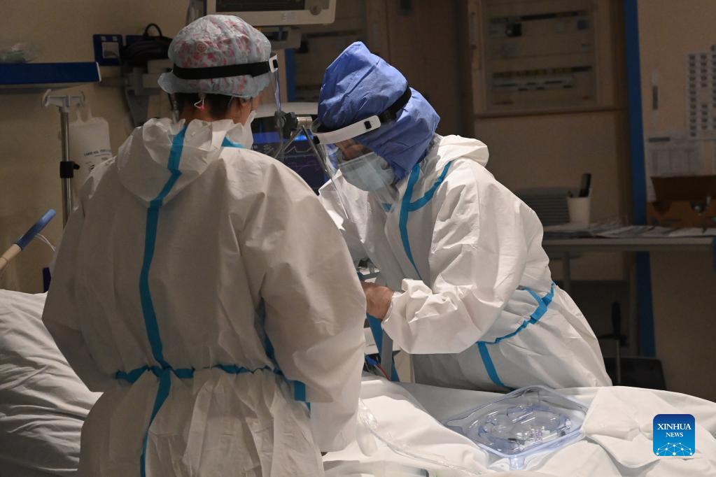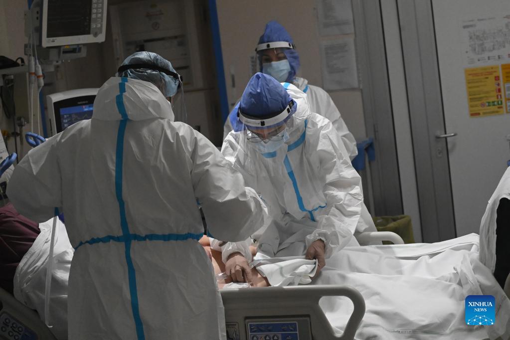 Medical staff members work in a COVID-19 unit at a hospital in Bologna, Italy, on Dec. 3, 2021. Coronavirus infection rates in Italy are on the rise. Italy reported 17,030 new COVID-19 cases on Friday, bringing the total number of confirmed COVID-19 cases to 5,077,445, according to the latest data from the Ministry of Health. (Photo by Gianni Schicchi/Xinhua)