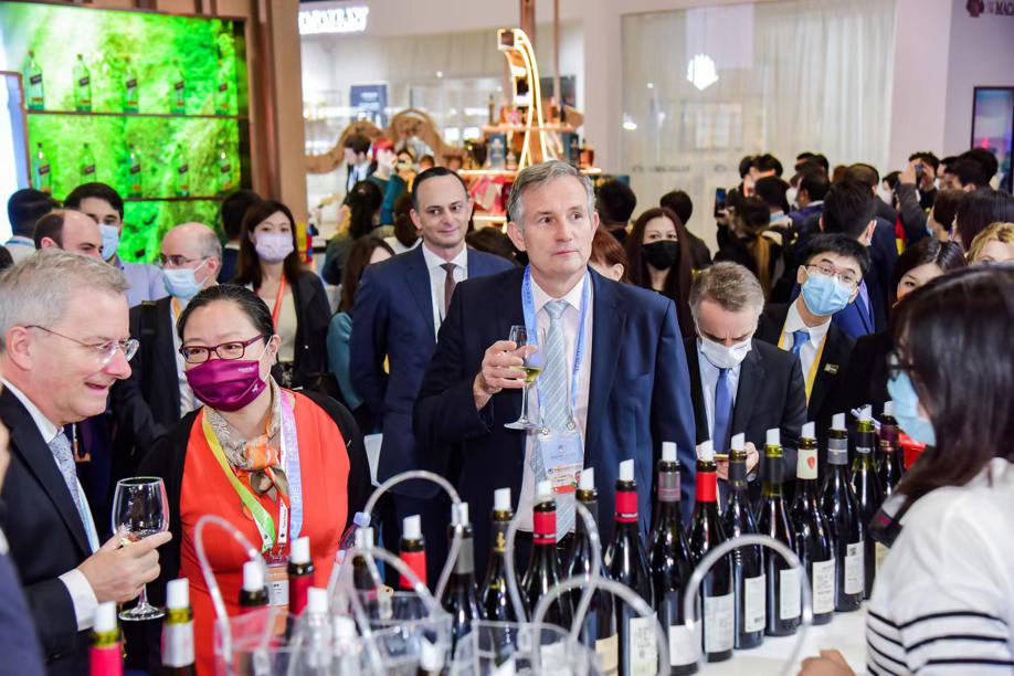 French ambassador Laurent Bili samples wine at French pavilioan at fourth China International Import Expo. [Photo provided to chinadaily.com.cn]