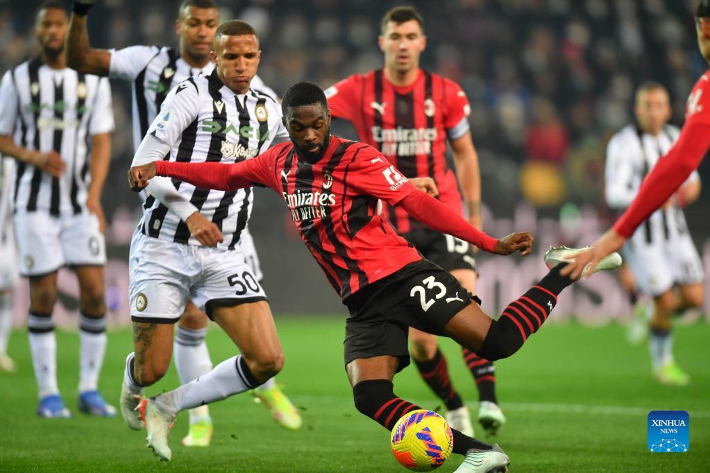AC Milan's Fikayo Tomori is in action during a Serie A soccer match between Udinese and AC Milan in Udine, Italy, Dec. 11, 2021. (Str/Xinhua)