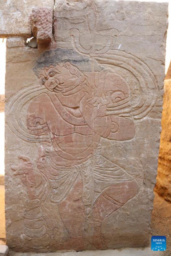 This undated photo provided by the Shanxi Provincial Institute of Archaeology shows carved images on the outer coffin in the unearthed tomb in Datong City, north China's Shanxi Province. (Shanxi Provincial Institute of Archaeology/Handout via Xinhua)